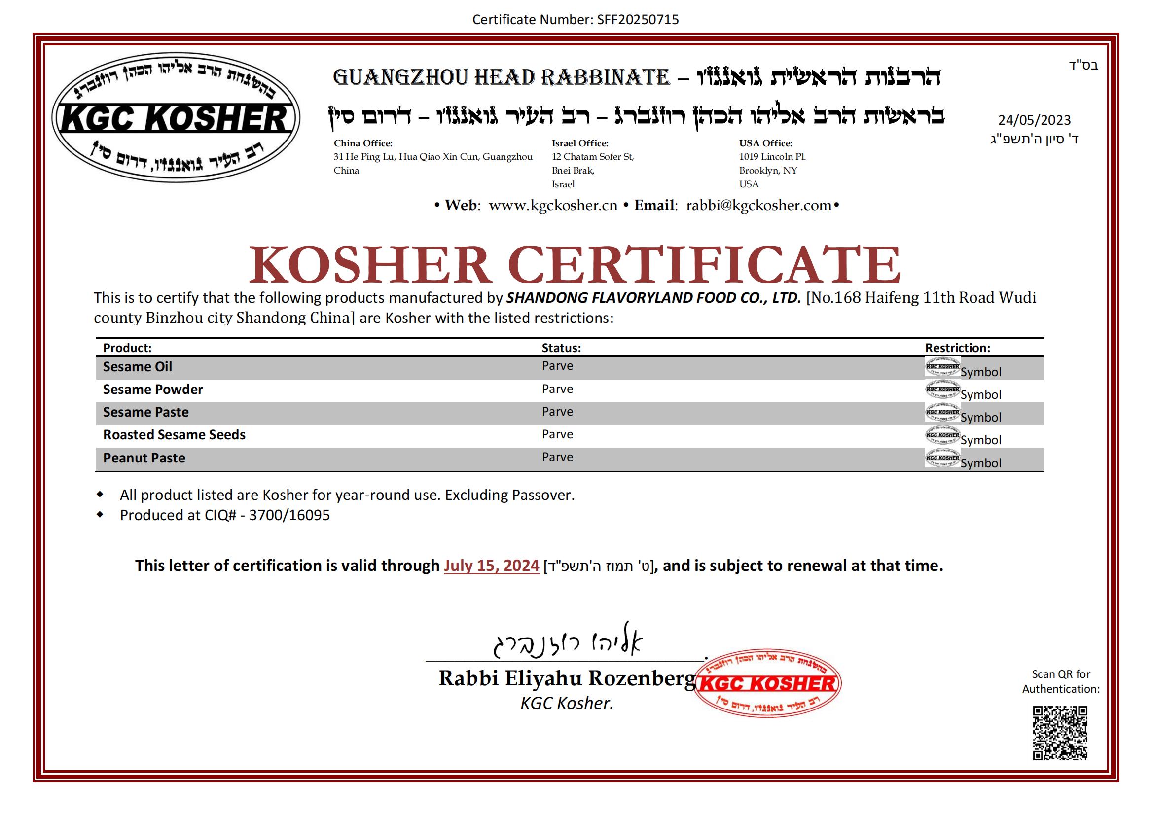 • KOSHER證書
