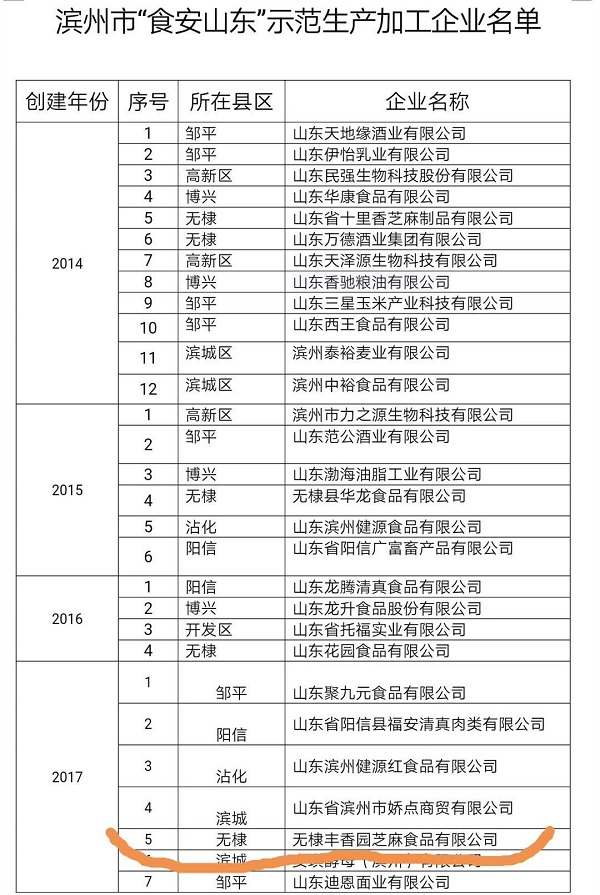 1、國家出口食品備案生產企業 2、農業產業化重點龍頭企業 3、市級“一企一技術”研發中心創新企業 4、2015年獲得市級“一企一技術”研發中心創新企業? 5、“中國好糧油” 示范企業 6、“食安山東”生產加工示范企業 7、省級“專精特新”中小企業 8、市級農業產業化聯合體 9、科技型中小企業 10、濱州市瞪羚企業 11、濱州市新興產業“白名單”企業 ? ?