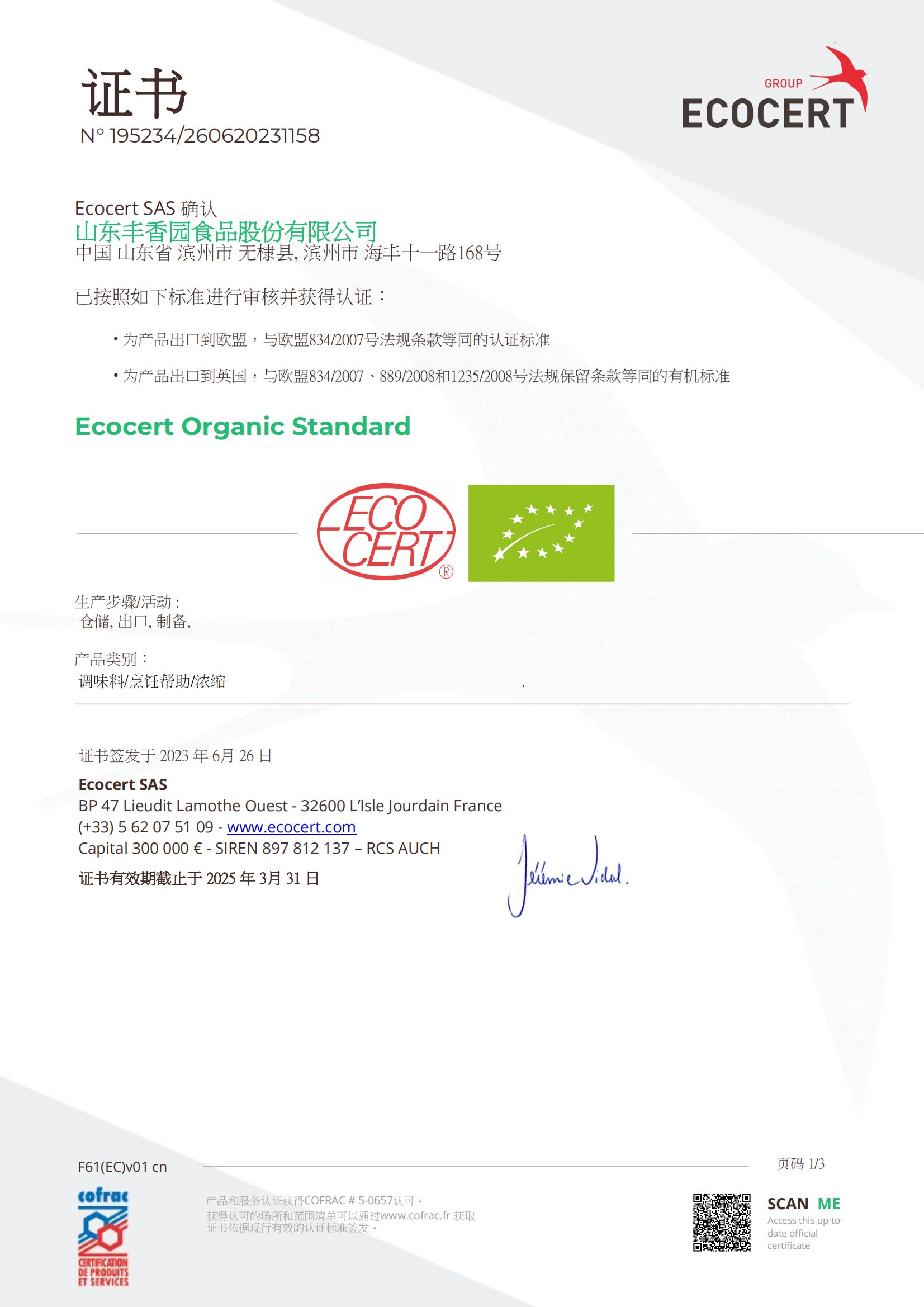 • 歐盟有機證書